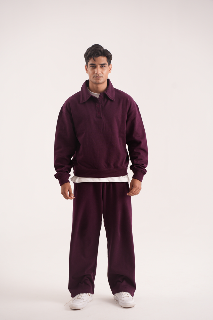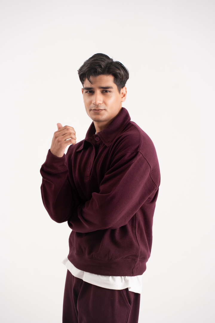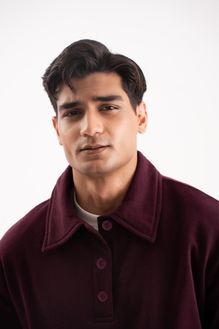 Button up Sweatshirt in Cherry Lacquer